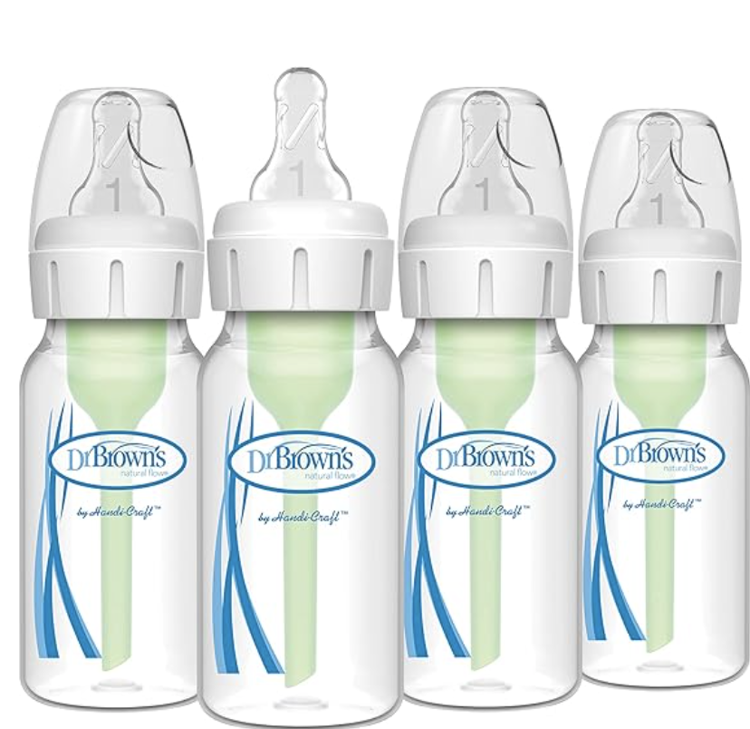 Anti-Colic Options+ Narrow Baby Bottle, 4 oz/120 mL, with Level 1 Slow Flow Nipple, 0m+, 4 Bottles